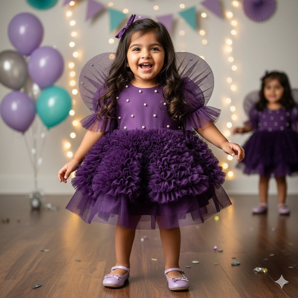 Whether it’s a birthday celebration, a special photoshoot, or a family gathering, this dress is designed to make your little star shine while keeping them cozy and happy. 💜🎀🧚♀️